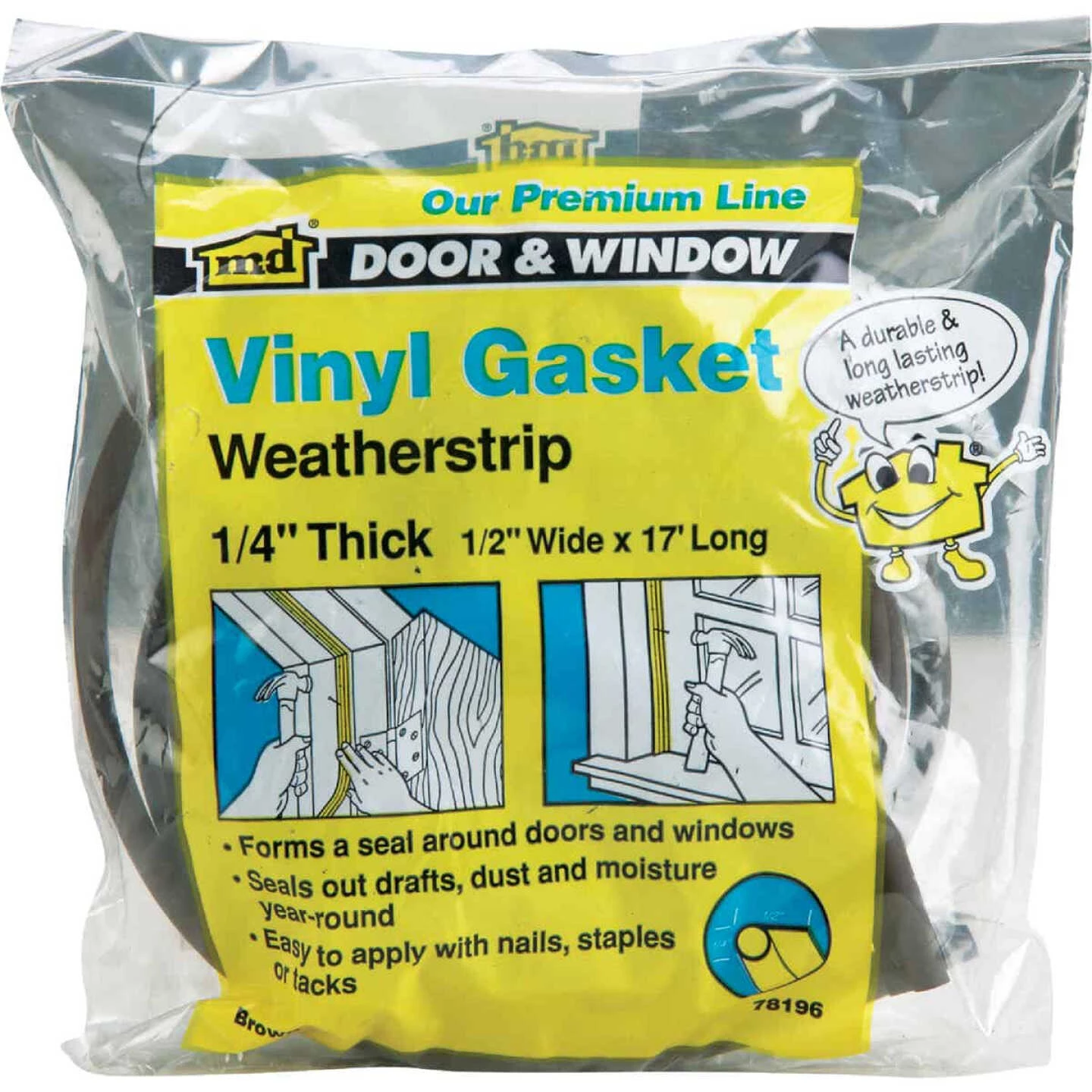 Flexible vinyl bulb seals around doors and windows. May be nailed or stapled. 1/2″ W. x 17′ L.