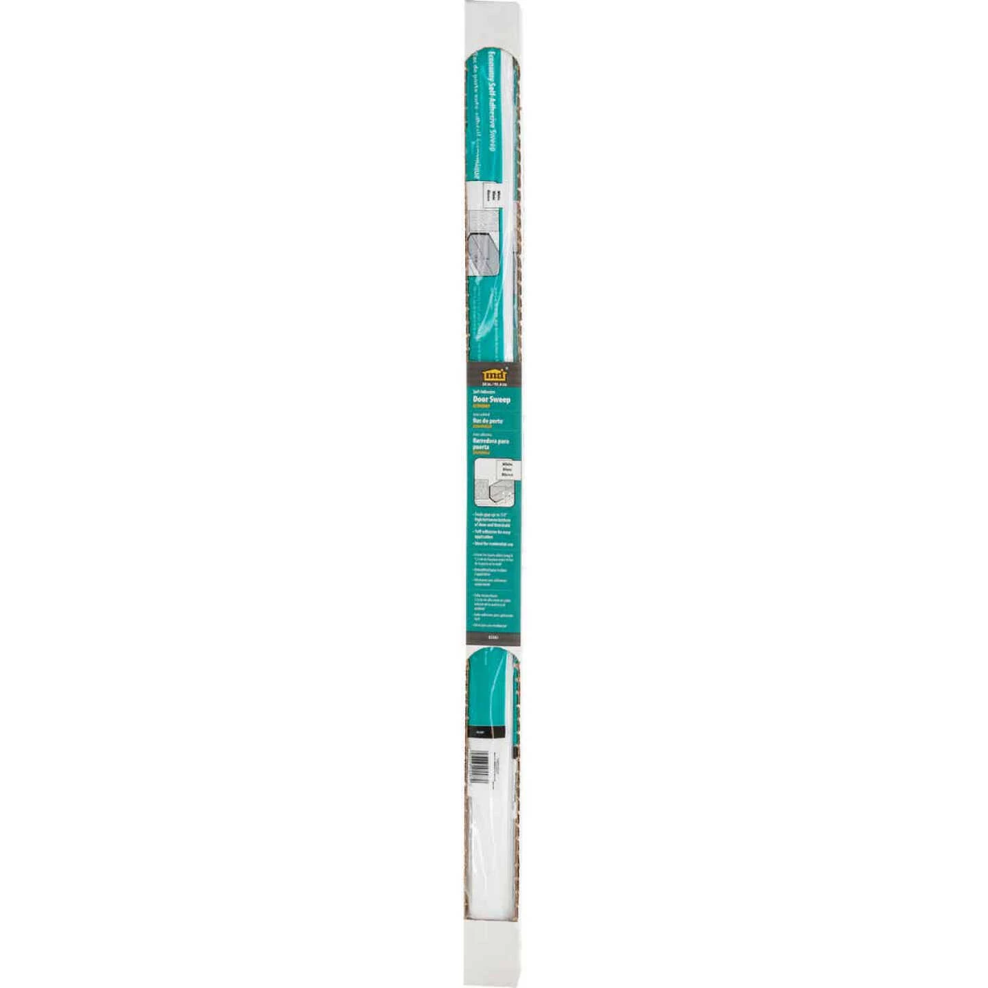 Rigid vinyl with soft vinyl sweep. Self-adhesive back will stick to all door types. Requires no nails or screws. Makes no holes. Flexible to compensate for carpet or uneven doors.