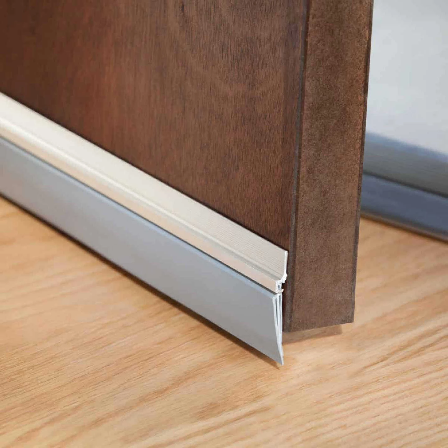 Made of aluminum with vinyl insert. Door seal bottom is pre-trimmed for 36 In. doors. Seals the bottom of doors from air, dust, water and insects. Quick installation in less than 5 minutes time. Made with 3M adhesive technology, eliminates the need for drills, screws, screwdrivers or pilot holes. Simply measure, trim, peel and stick for energy savings.