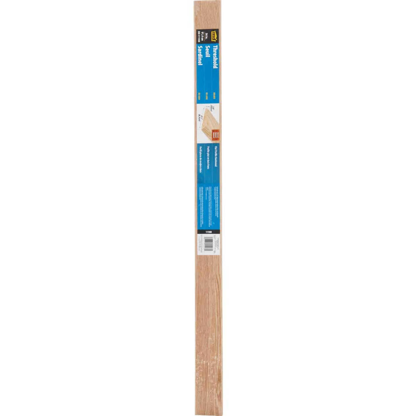 Interior flat clear hardwood threshold. Unfinished wood can be painted or stained to match home decor. Fasteners included. 36 In. long.