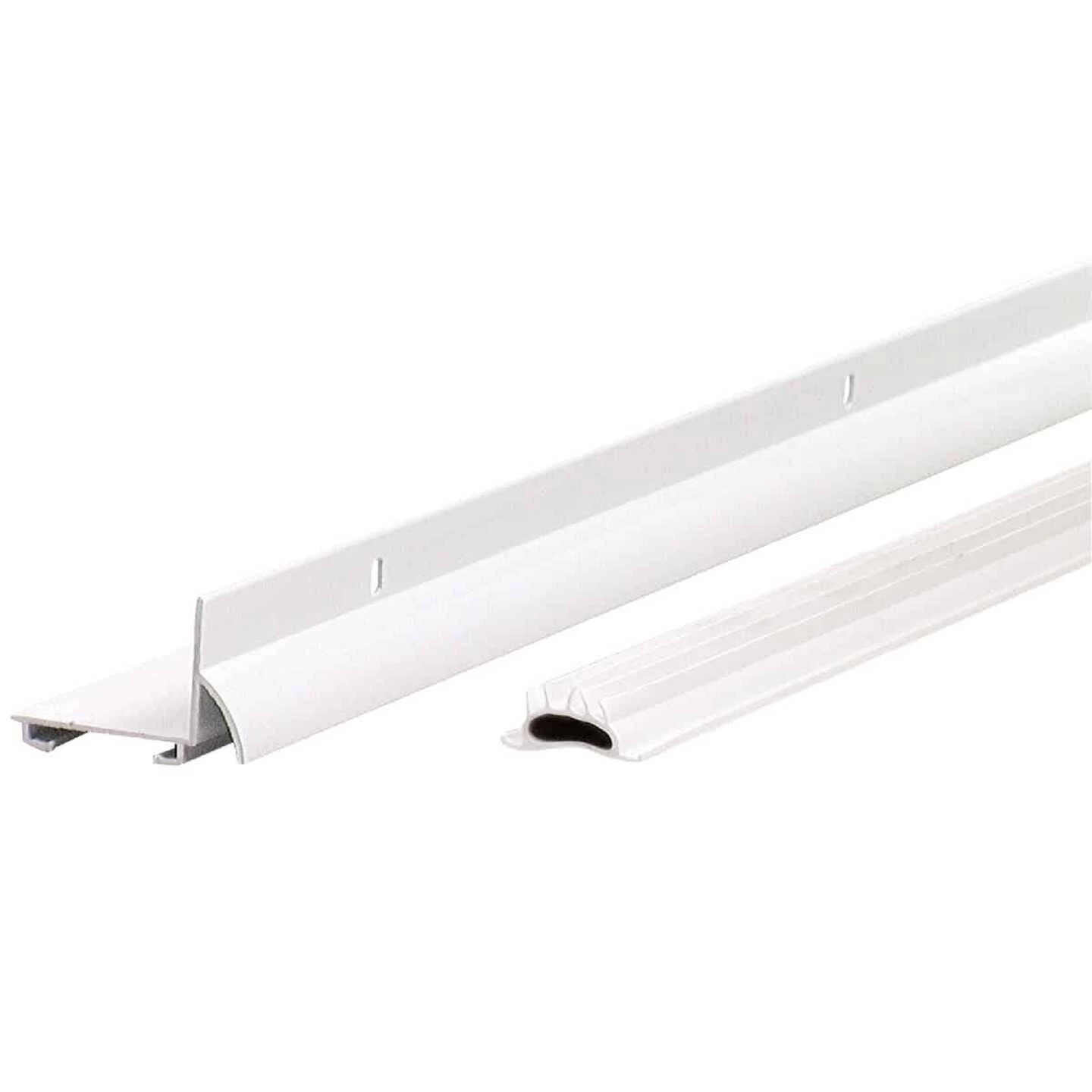 DB001. Fits both 1-3/8 In. and 1-3/4 In. doors. L-shaped door shoe with drip cap. Vinyl insert included.